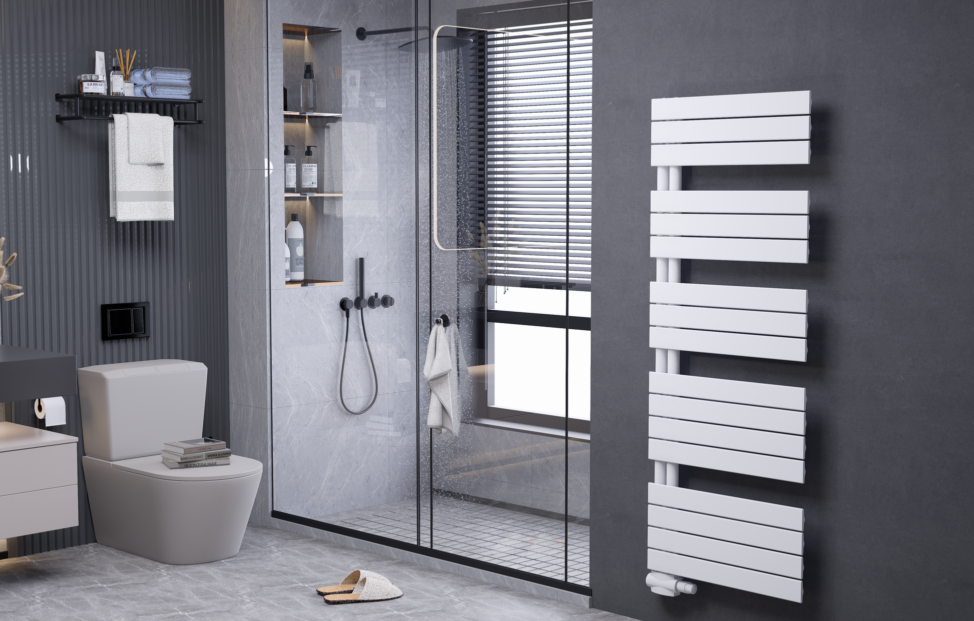 Със стилния си бял цвят (RAL 9016) и иновативния плосък дизайн, този радиатор е перфектен избор за всяка модерна баня. Подходящ за отоплителни системи с термопомпи, пелетни камини, газови котли и централно отопление. Освен това може да бъде използван и като електрически радиатор (изисква допълнителен нагревател, който не е включен).