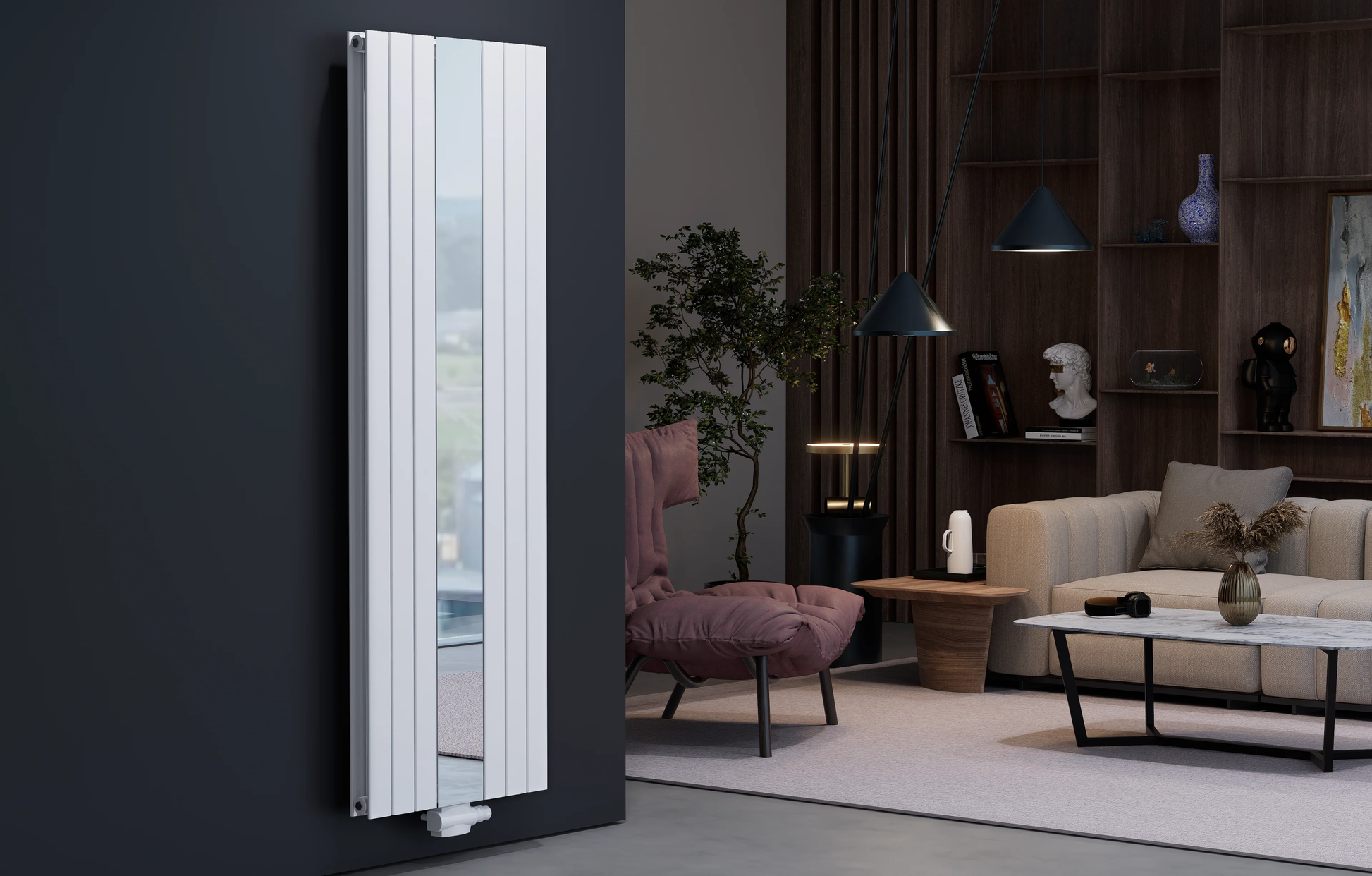 Със класическия си бял цвят (RAL 9016) и вграденото огледало, този радиатор е перфектен избор за бани, спални, коридори, дневни, офиси, хотели и СПА центрове. Работи с отоплителни системи с термопомпи, пелетни камини, газови котли и централно отопление.
