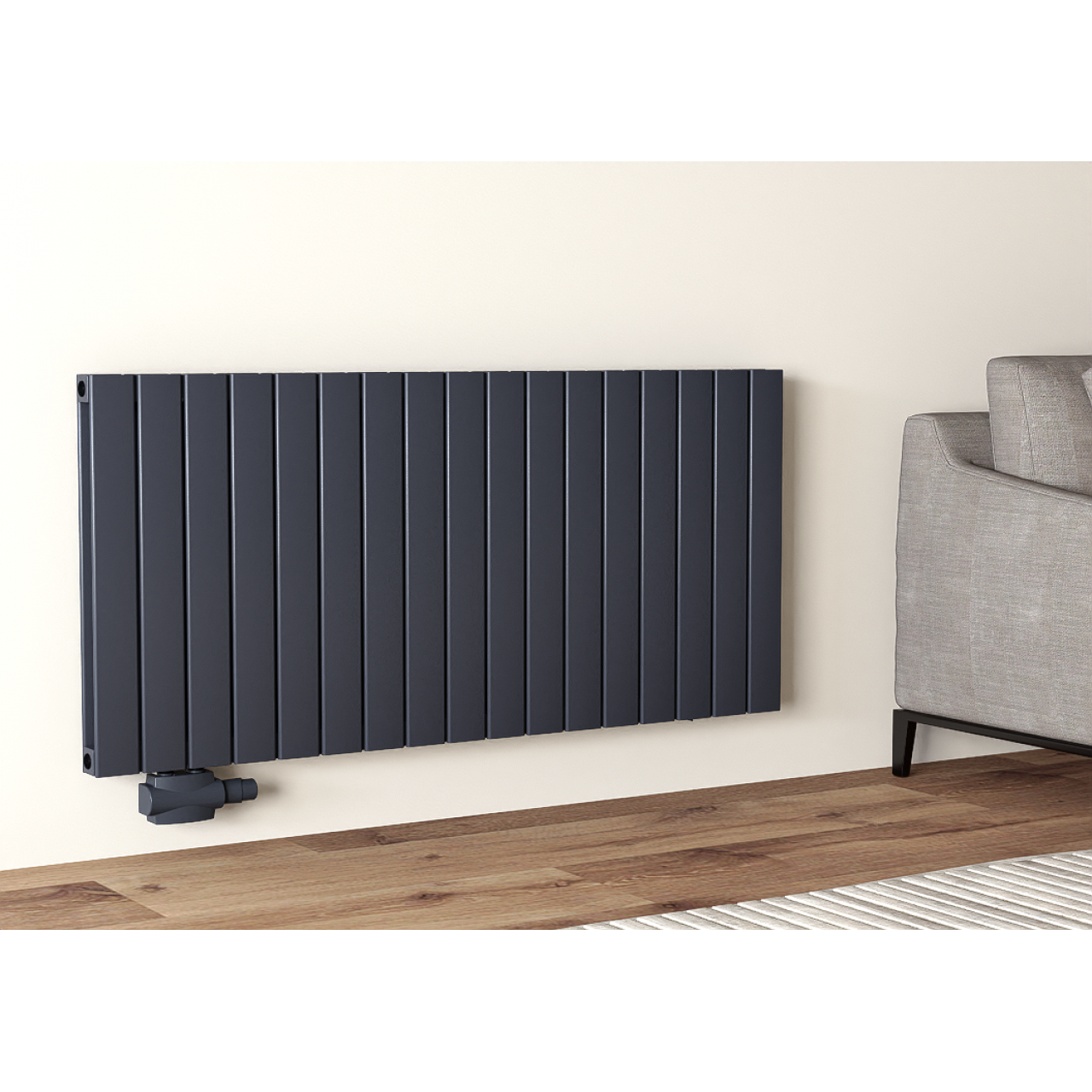 Алуминиевият панелен радиатор 600x1309 мм е перфектното решение за централно отопление, термопомпи, пелетни камини и газови котли. Със съвременен хоризонтален дизайн, висока енергийна ефективност и стилен антрацитен цвят, този радиатор не само затопля вашето помещение, но и допринася за елегантния интериор.