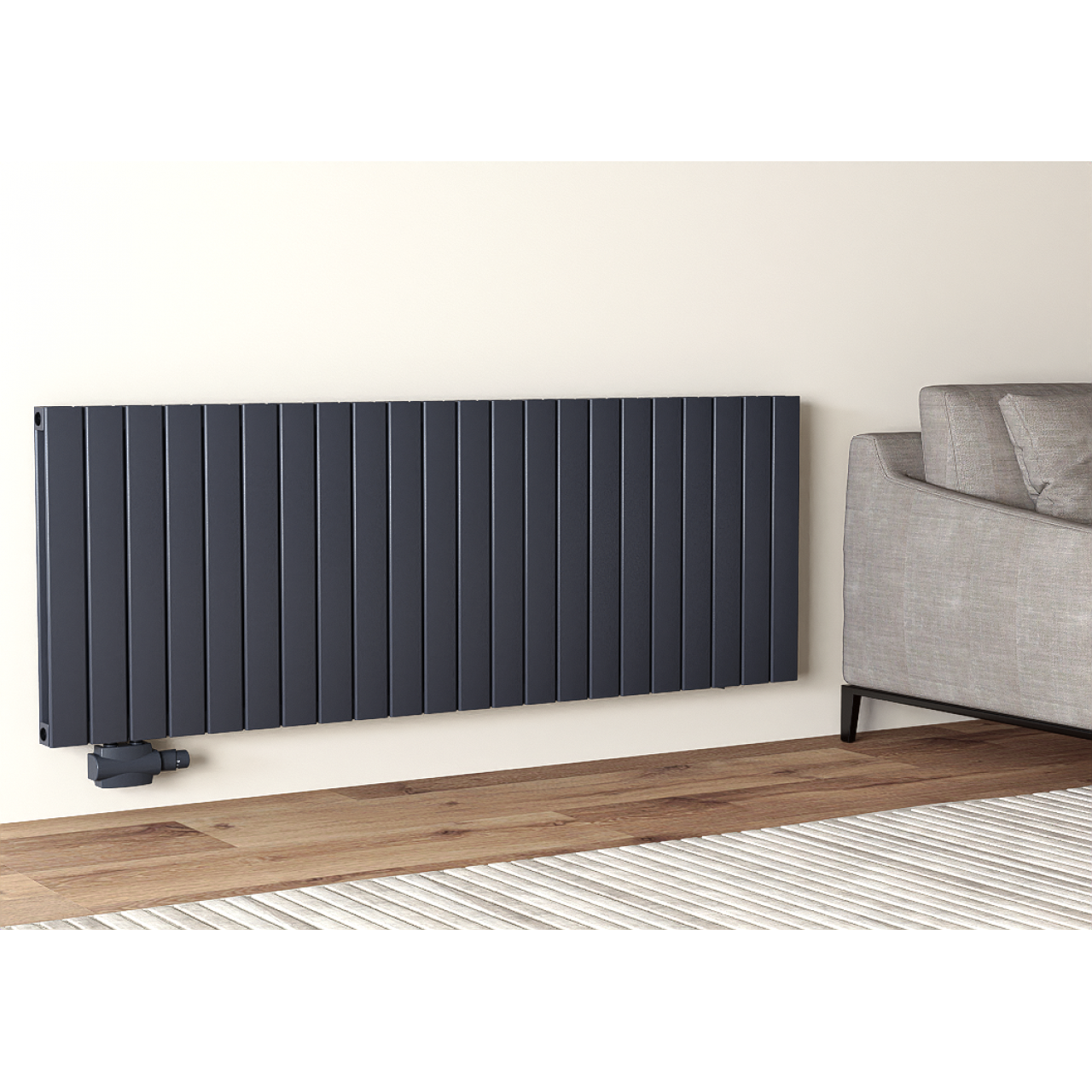 Алуминиев панелен радиатор 600x1694 мм – Хоризонтален | Двупластов | Ляво средно свързване | Антрацит