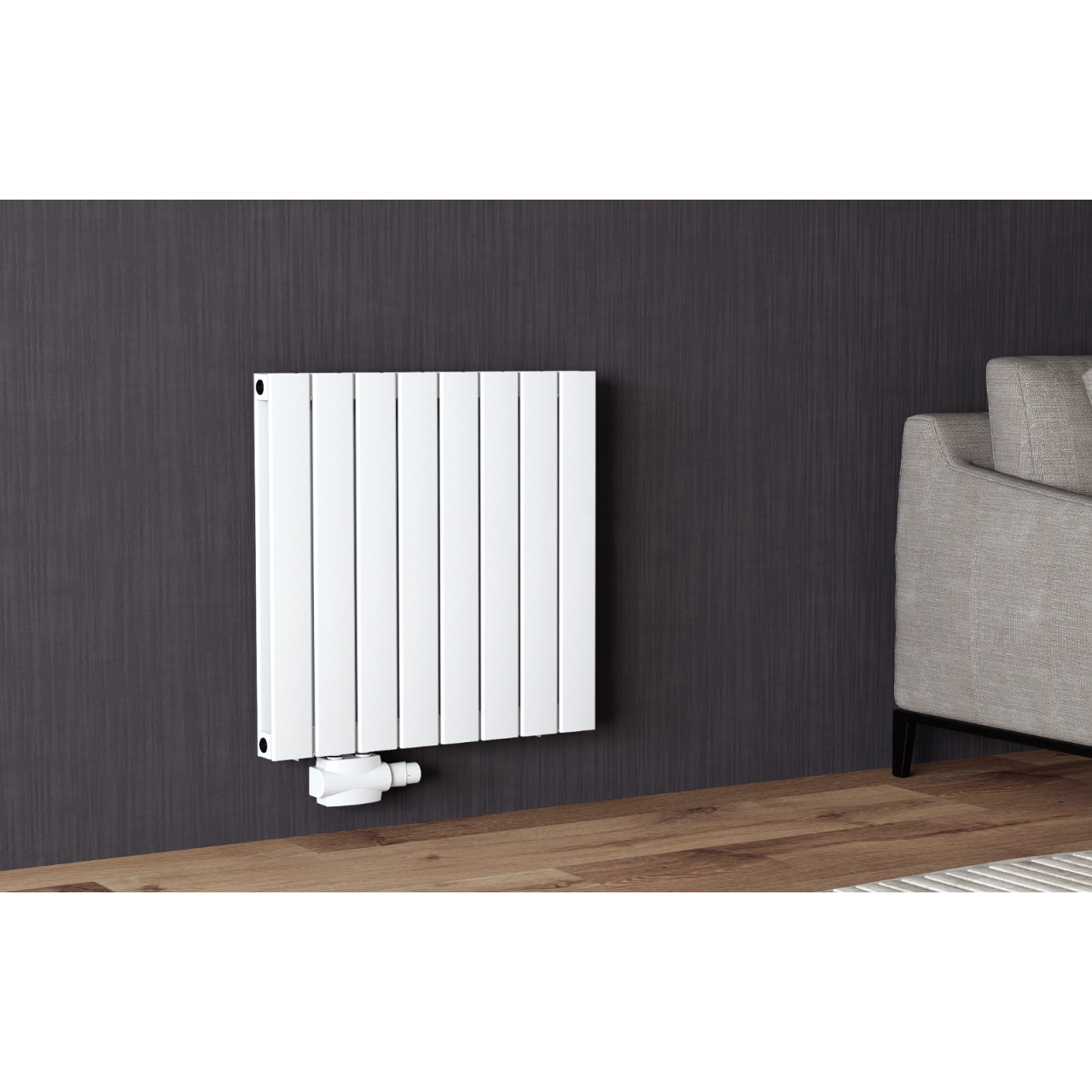 Алуминиевият панелен радиатор 600x616 мм е идеалното решение за централно отопление, термопомпи, пелетни камини и газови котли. Благодарение на двупластовата конструкция и високата топлопроводимост, радиаторът осигурява равномерно отопление с минимален разход на енергия. Класическият бял цвят и вертикалният дизайн се вписват перфектно във всеки модерен интериор.