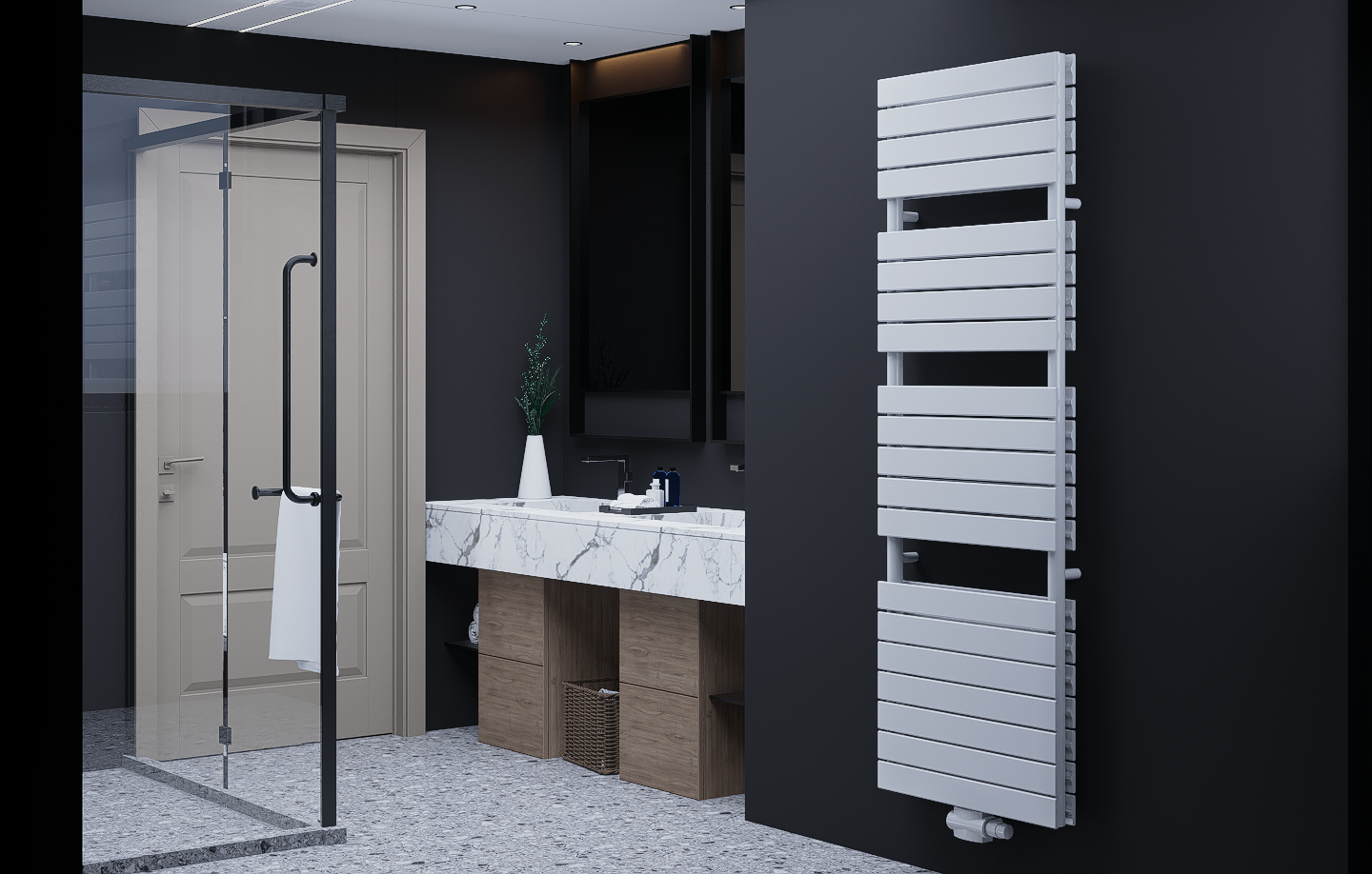 Този дизайнерски плосък радиатор 1800x600 мм предлага елегантен и минималистичен дизайн, комбиниран с висока топлинна ефективност. Изработен от висококачествена стомана с отлична топлопроводимост, той осигурява бързо и равномерно отопление във вашата баня.